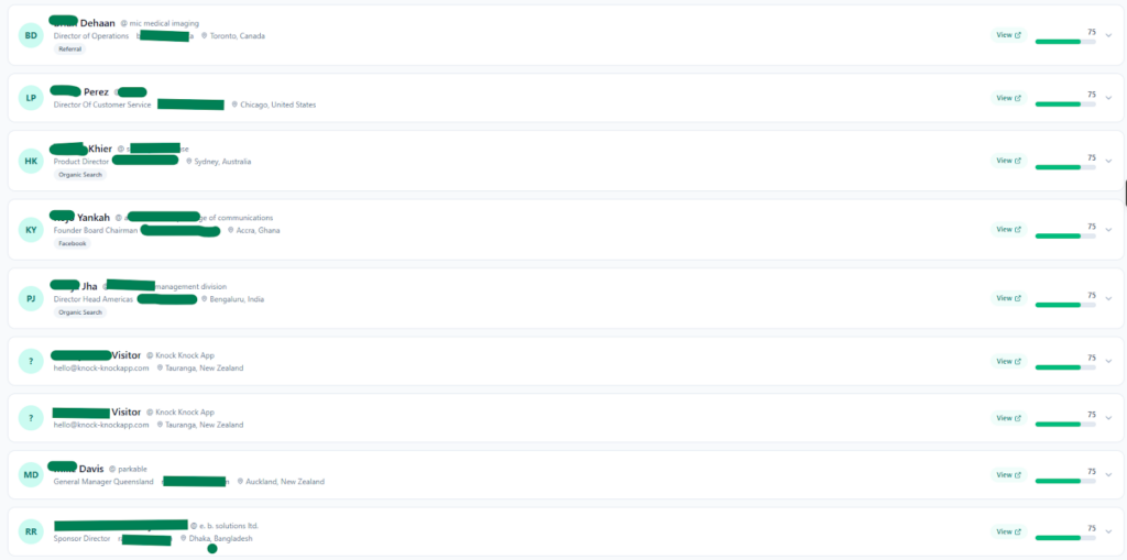 The Knock Knock dashboard translates visitor behaviour into actionable intelligence. Real names. Real intent. Real results.