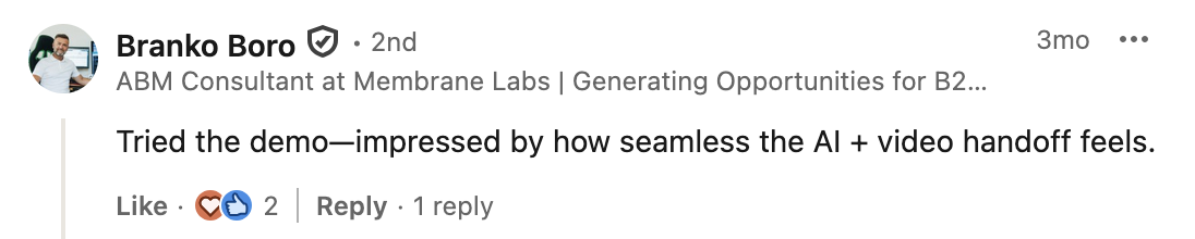 The AI intelligently detects high-intent signals (pricing questions, “I want to buy,” complex queries) and offers to connect the visitor to a human instantly via voice, video, or chat.
