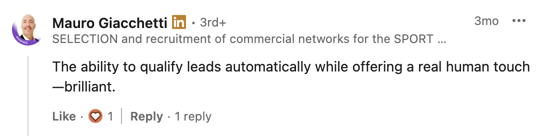 When the lead is ready, it connects them to your sales rep in real
