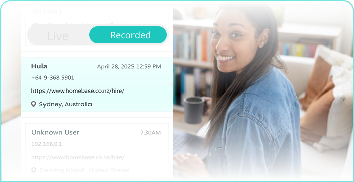 Missed a live interaction? No problem. Replay past visitor sessions to understand their journey, uncover drop-off points, and refine your website and sales strategies for higher conversions.