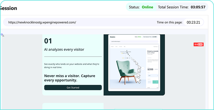 While tracking visitors in real time, you can instantly launch a video or audio call at the perfect moment—when interest is highest.